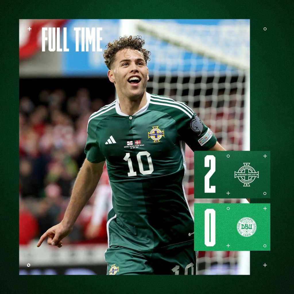 Σε ένα παιχνίδι δίχως κάποιο βαθμολογικό ενδιαφέρον, η Β. Ιρλανδία επικράτησε με 2-0 της Δανία και ολοκλήρωσε με τον καλύτερο τρόπο τις υποχρεώσεις της στα προκριματικά του Euro.