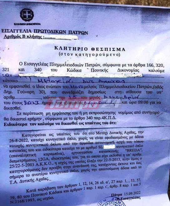 Παρακάτω, βλέπετε κλήτευση σε δίκη που αφορά άνδρα που διέμενε σε χωριό της Δυτικής Αχαΐας. Και λέμε διέμενε γιατί ο άνθρωπος έχει αποδημήσει εις Κύριον από το 2003!