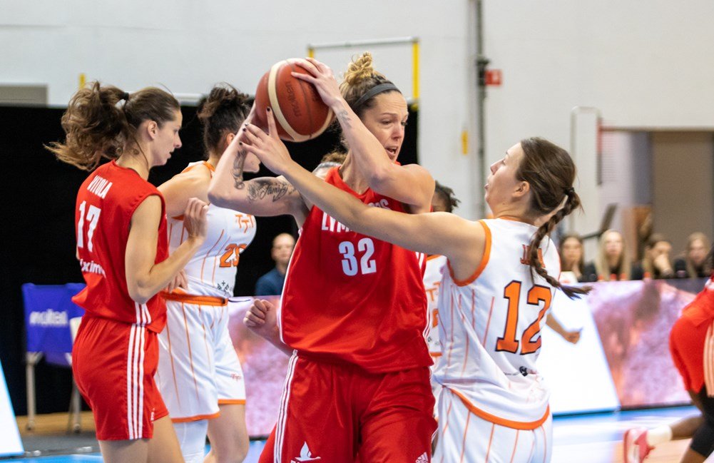 Η ομάδα από τη Λετονία πήρε εκ νέου διαφορά (23-14, 14’30’’) με τις ερυθρόλευκες να μην αφήνουν την αντίπαλό τους να ξεφύγει περισσότερο και έτσι μείωσαν στο ημίχρονο σε 31-26.