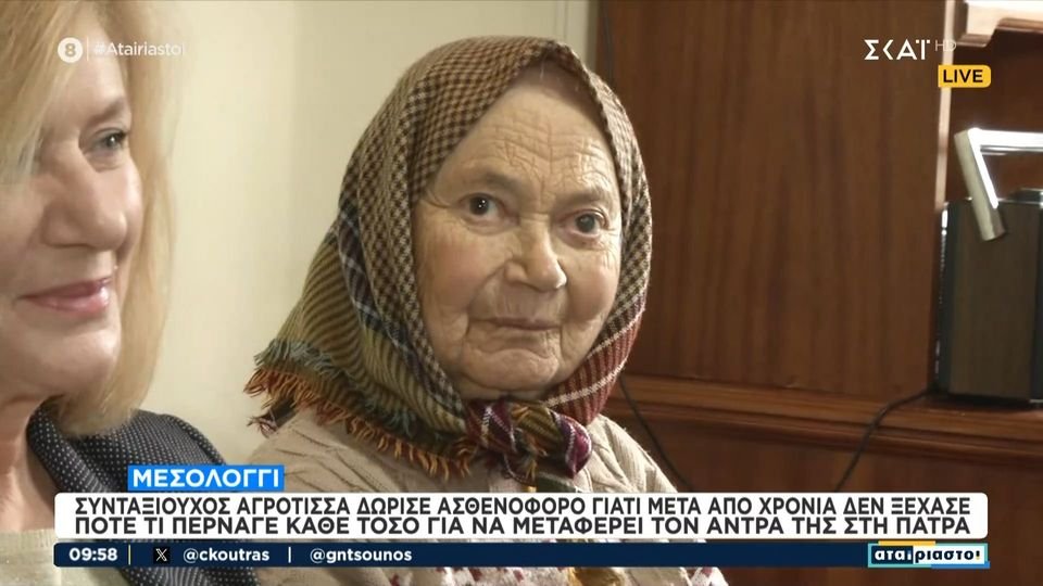 «Ήταν 12 χρόνια άρρωστος, χρειαζόταν να πηγαίνουμε στο νοσοκομείο και δεν μπορούσαν να μας στείλουν ένα ασθενοφόρο, πέρασα πολλά, έπαιρνα ταξί», είπε και πρόσθεσε πως παίρνει μία σύνταξη 400 ευρώ, έκανε οικονομία, πούλησε ένα χωράφι και έτσι κατάφερε να δωρίσει το ασθενοφόρο στο Νοσοκομείο.