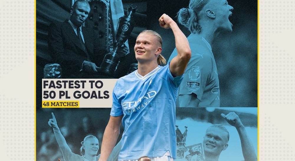 Ο Έρλινγκ Χάαλαντ έχει σκοράρει 50 φορές, σε 48 παιχνίδια Premier League, μετά και το γκολ του, στο 27ο λεπτό, με το οποίο η Μάντσεστερ Σίτι άνοιξε το σκορ, απέναντι στη Λίβερπουλ, στο ντέρμπι της 13ης αγωνιστικής. Ο 23χρονος έφτασε πιο γρήγορα, από οποιονδήποτε άλλο, τα 50 γκολ στη Premier League.