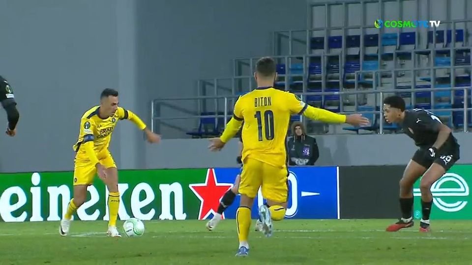 Τελικά στο 45+1’ η Μακάμπι κατάφερε να κάνει το 1-0 με καταπληκτικό πλασέ του Ζάχαβι λίγο έξω από την μεγάλη περιοχή, ενώ στο 47’ οι Ισραηλινοί διπλασίασαν τα τέρματα τους με τον Πέρετς.