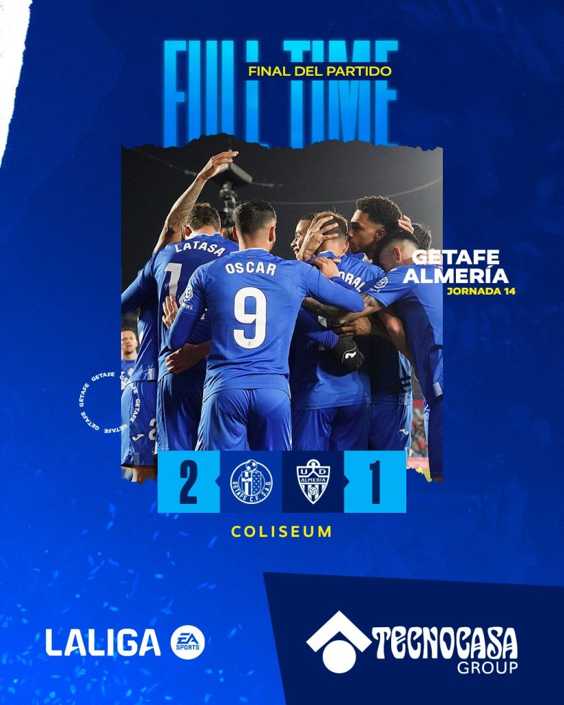 Νίκη με ανατροπή για την Χετάφε. Το σύνολο του Χοσέ Μπορδαλάς αν και βρέθηκε πίσω στο σκορ κόντρα στην Αλμερία, έκανε την ανατροπή, την κέρδισε με 2-1 και ανέβηκε στους 19 βαθμούς.