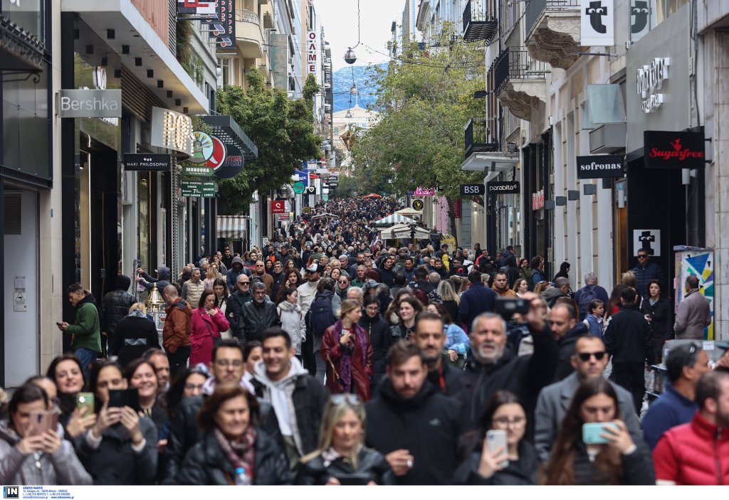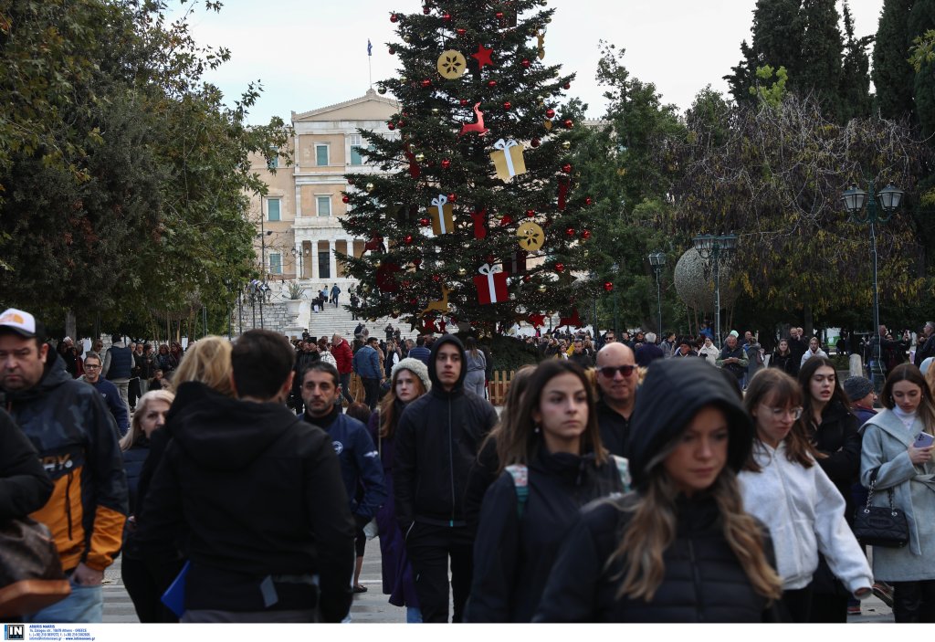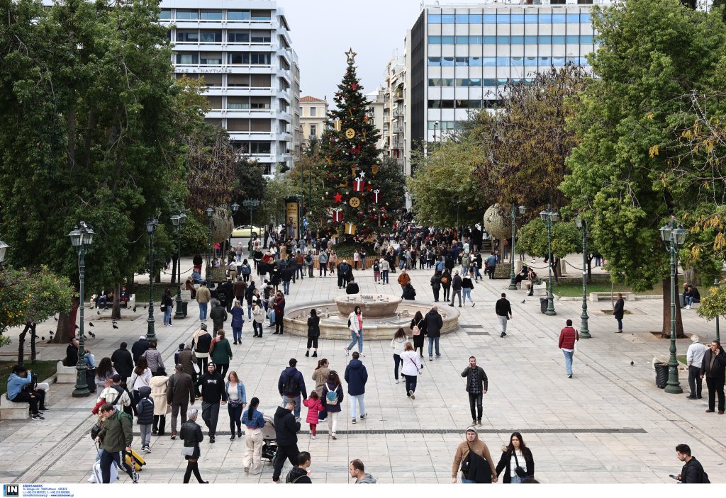 Σε ρυθμούς Χριστουγέννων κινείται το κέντρο της Αθήνας. Το Σύνταγμα είναι πλέον στολισμένο και στην Ερμού, με τα καταστήματα ανοιχτά σήμερα Κυριακή, περπατά πλήθος κόσμος. Δείτε εικόνες.