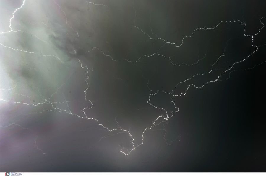 To στιγμιότυπο κατεγράφη τα ξημερώματα του Σαββάτου όταν οι καταιγίδες που έπληξαν την Αττική συνοδεύτηκαν και από κεραυνούς.