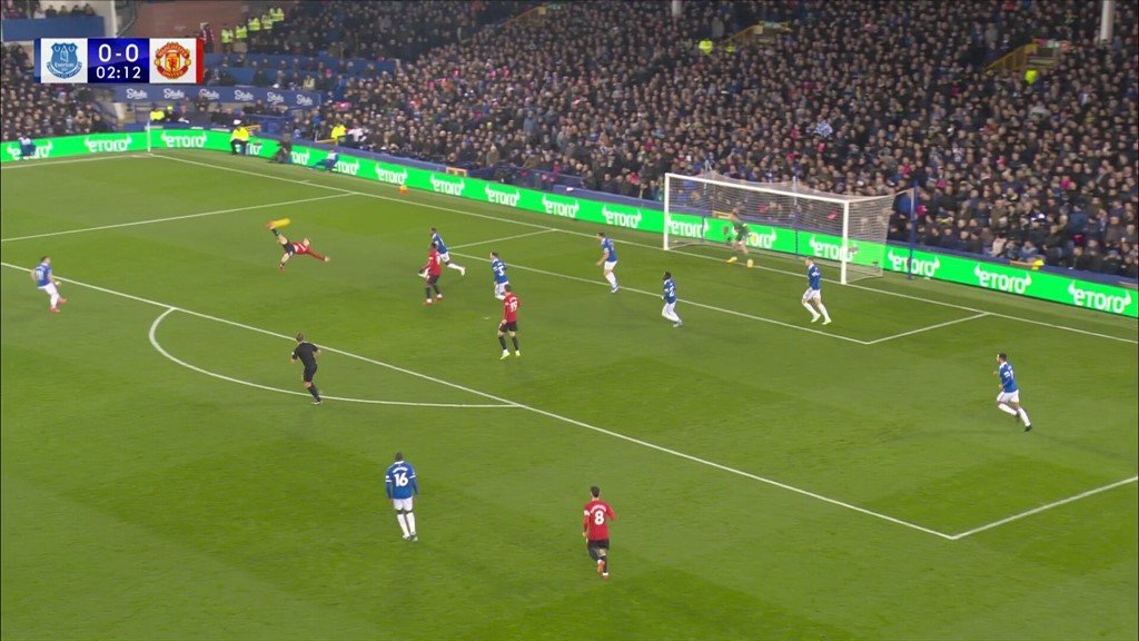 Αδιανόητη γκολάρα από τον Αλεχάντρο Γκαρνάτσο! Μόλις στο 3ο λεπτό της αναμέτρησης της Μάντσεστερ Γιουνάιτεντ με την Έβερτον, ο Αργεντινός εξτρέμ εκμεταλλεύτηκε την σέντρα του Νταλότ από τα δεξιά και με ένα απίστευτο ψαλιδάκι έστειλε την μπάλα στο βάθος της εστίας του Πίκφορντ για το 0-1.