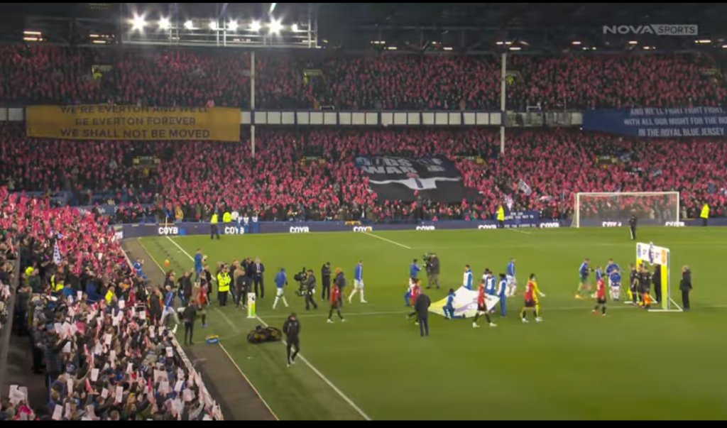 Το, εντός έδρας, παιχνίδι με τη Μάντσεστερ Γιουνάιτεντ ήταν η ιδανική ευκαιρία για τους οπαδούς της Έβερτον, προκειμένου να εκφράσουν την οργή τους, για την απόφαση της Premier League να επιβάλλει ποινή αφαίρεσης δέκα βαθμών, στην αγαπημένη τους ομάδα, για οικονομικές παραβάσεις.