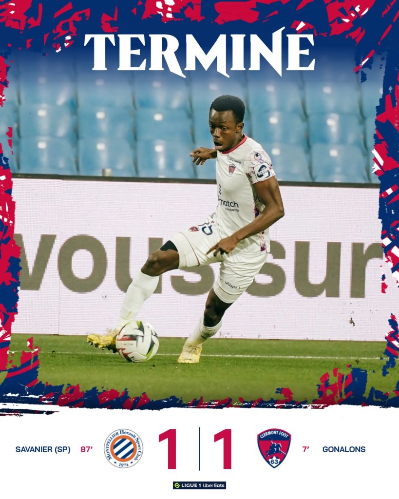 Η Κλερμόν άνοιξε το σκορ στο 7ο μόλις λεπτό με τον Γκοναλόν και στο 87΄η Μονπελιέ ισοφάρισε με το πέναλτι του Σαβανιέ.