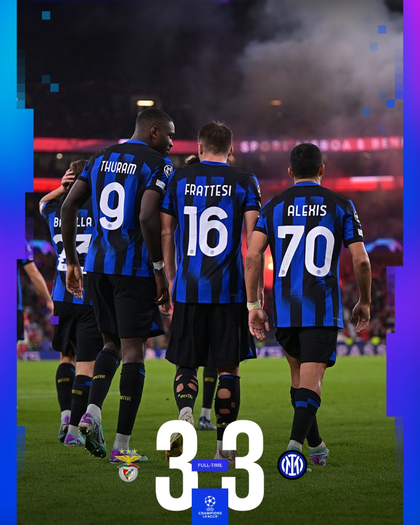 Αυτοκτόνησε η Μπενφίκα η οποία βρέθηκα μπροστά στο σκορ με 3-0 κόντρα στην Ίντερ και στο τέλος κόλλησε στο 3-3. Θαύμα ψάχνει πλέον για την 3η θέης καθώς θέλει νίκη με 3 γκολ διαφορά επί της Ζάλτσμπουργκ. Για την πρωτιά με τη Ζάλτσμπουργκ θα παλέψει η Ίντερ.