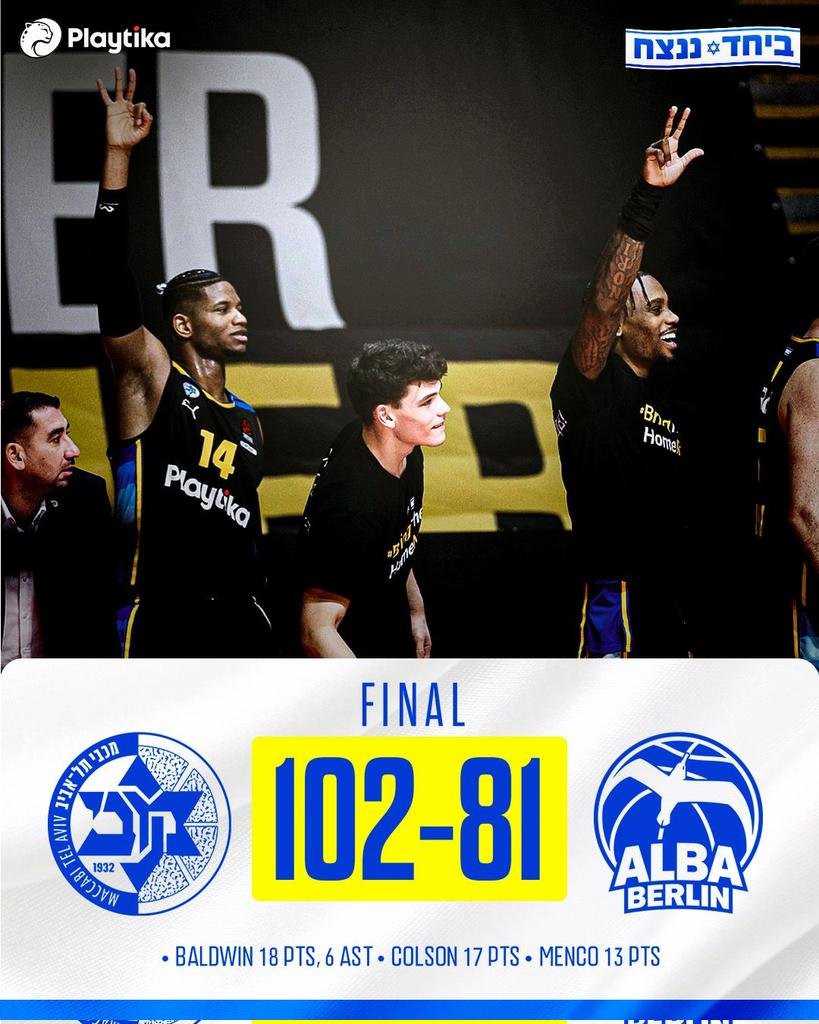Την νίκη που τόσο χρειαζόταν πήρε η Μακάμπι κόντρα στην Άλμπα με 102-81. Η ομάδα του Όντετ Κάτας είχε για πρώτο σκόρερ τον Μπόλντγουιν με 18 πόντους; Ακολούθησε ο Κόλσον με 17, ενώ πρώτος σκόρερ για τους ηττημένους ήταν ο Πρότσιντα με 22 πόντους.