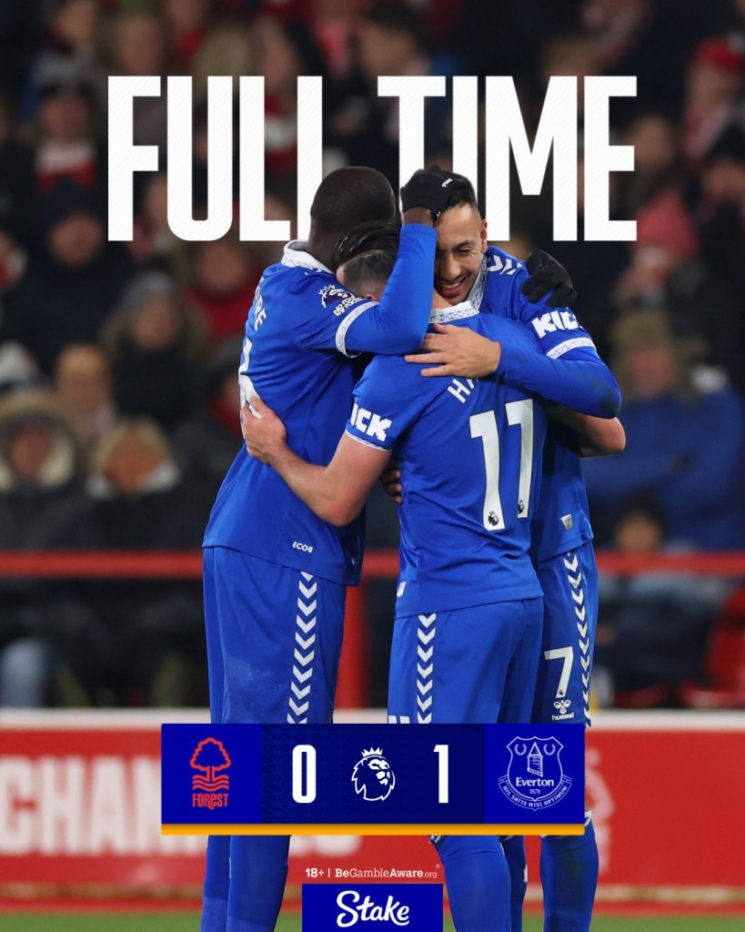 Η Έβερτον πήρε σπουδαίο διπλό μέσα στην έδρα της Νότιγχαμ Φόρεστ την οποία κέρδισε με 1-0 και βρέθηκε στο -2 από τη 17η Λούτον.