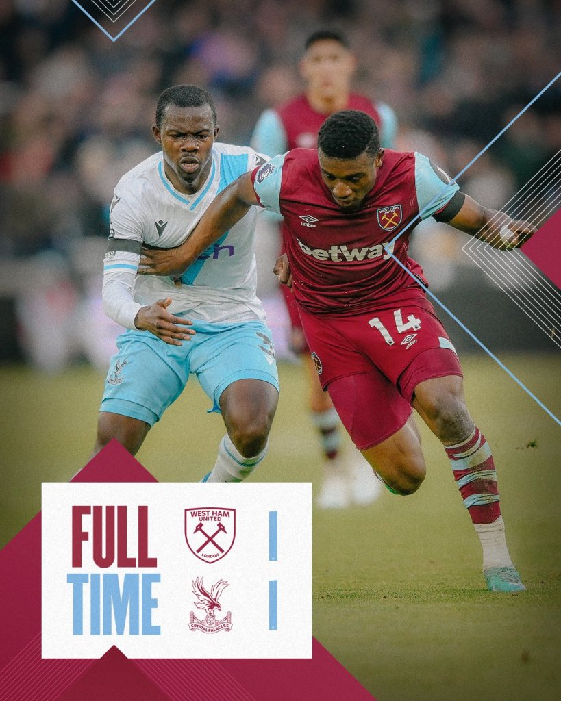 Όρθια στην έδρα της Γουέστ Χαμ έμεινε Κρίσταλ Πάλας που απέσπασε ισοπαλία 1-1.