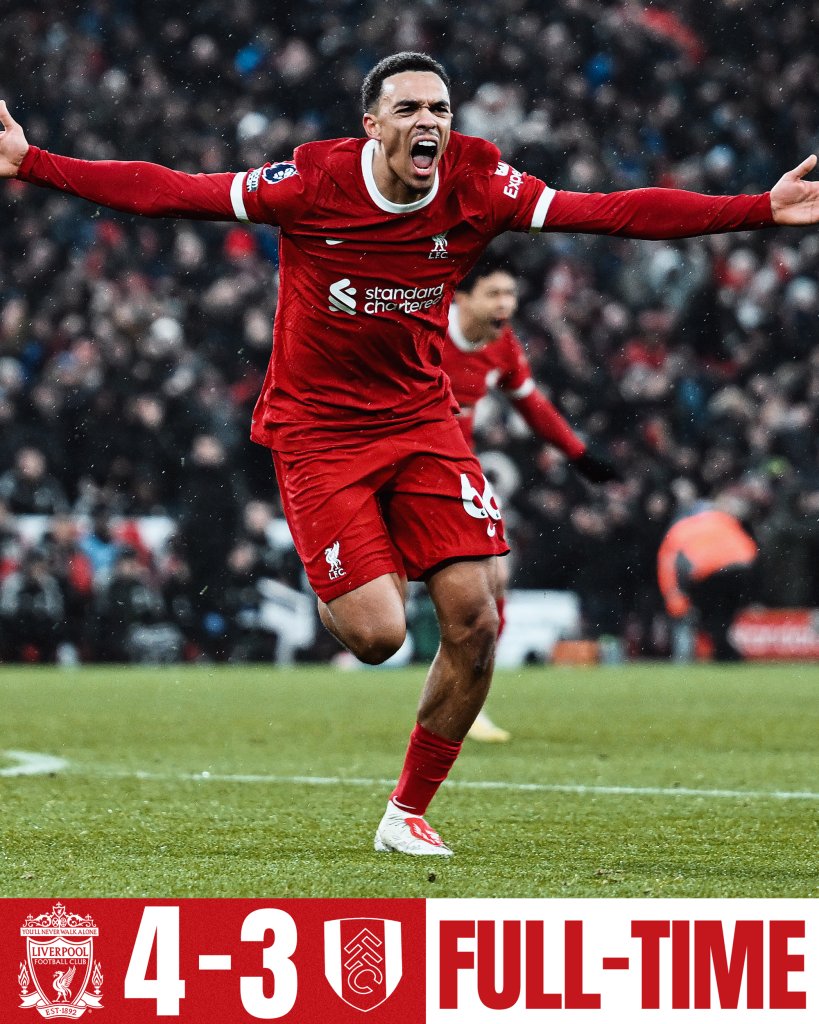 Τρελό ματς στο «Άνφιλντ» με τη Λίβερπουλ να νικά με 4-3 τη Φούλαμ κάνοντας ανατροπή στην ανατροπή. Sτο -2 από την κορυφή οι «κόκκινοι».