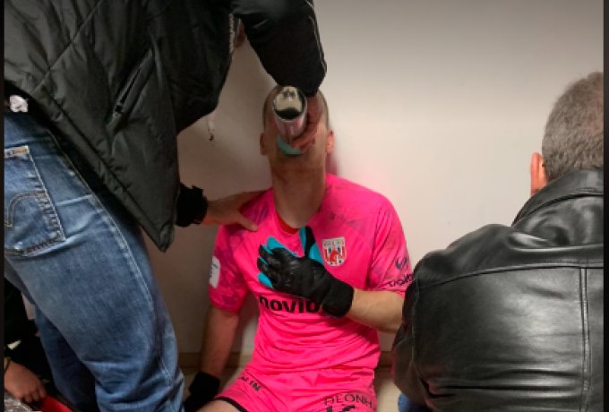 Ο γκολκίπερ του Βόλου Κόστιτς μάλιστα πέραν του οξυγόνου φαίνεται πως είχε πρόβλημα και με την όραση του λόγω των δακρυγόνων.