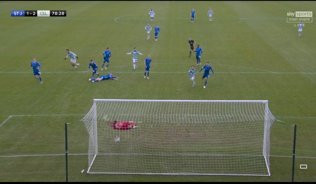 Πετυχαίνοντας τρία γκολ, σε διάστημα 26 λεπτών, στο δεύτερο ημίχρονο, η Σέλτικ ανέτρεψε το 1-0 του πρώτου ημιχρόνου, επικρατώντας 3-1 στην έδρα της Σεντ Τζόνστον και κρατάει σε απόσταση οκτώ βαθμών τη δεύτερη Ρέιντζερς.