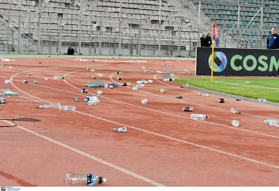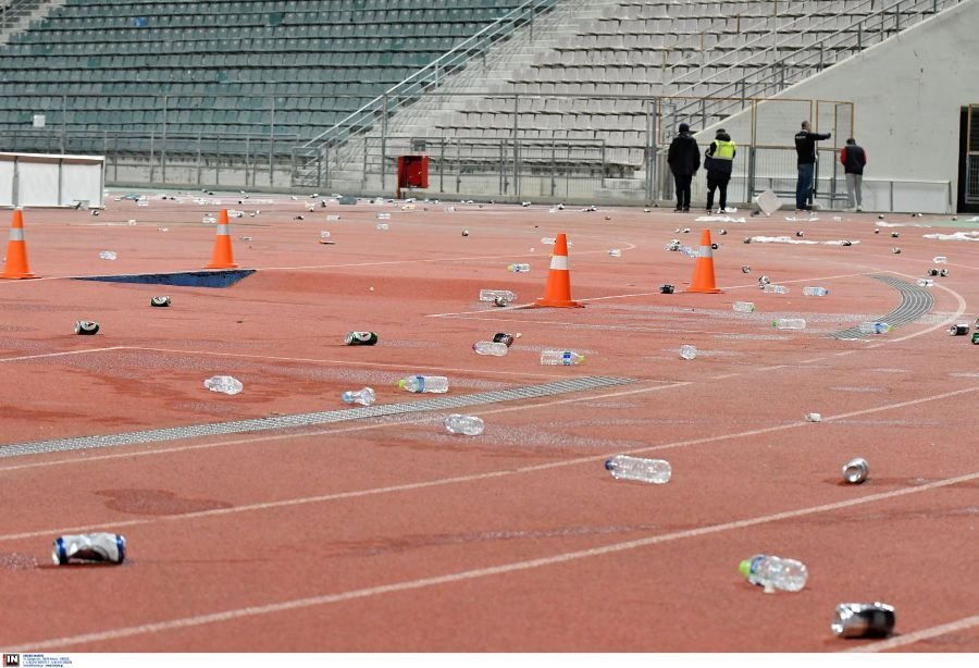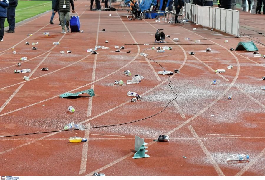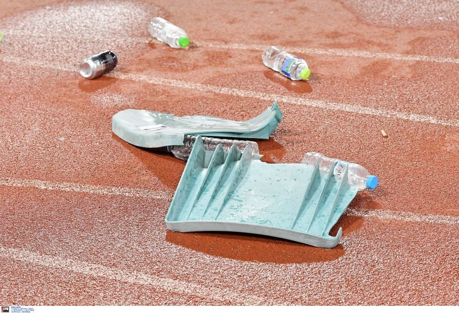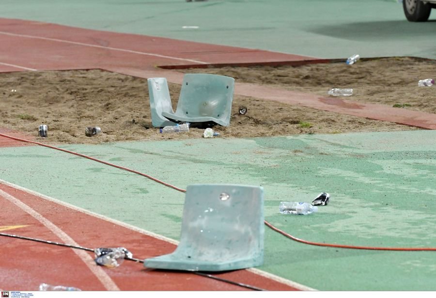 Εικόνα εμπόλεμης ζώνης στο Πανθεσσαλικό. Με τους οπαδούς του Ολυμπιακού να προκαλούν σοβαρά επεισόδια και να αφήνουν πίσω τους χάος. Δεκάδες σπασμένα καθίσματα, μπουκάλια και ότι μπορείς να φανταστείς βρίσκονται εντός του γηπέδου…