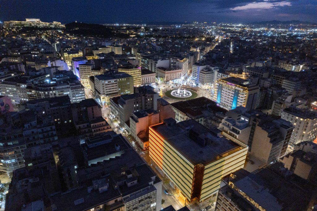 Λίγους μήνες πριν από την ολοκλήρωση του έργου που θα δώσει νέα πνοή στην ευρύτερη περιοχή της Ομόνοιας, το εμβληματικό κτήριο των οδών Πατησίων, Βερανζέρου, Δώρου και Σατωβριάνδου, που «κουβαλά» αναμνήσεις ετών, φωτίστηκε, προσφέροντας λάμψη και χαρά στους κατοίκους και επισκέπτες της πόλης.
