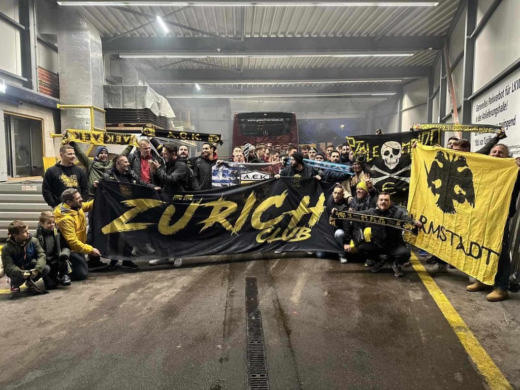 Στη Ζυρίχη για το ματς της ΑΕΚ με την Κρίενς ταξίδεψε μια μεγάλη παρέα της Original με επικεφαλής τον ιστορικό αρχηγό Δημήτρη Χατζηχρήστο. Στο χιονισμένο τοπίο φώναξαν συνθήματα για την ΑΕΚ που δεν παίζει πουθενά μόνη της όπως το οραματίστηκε ο «Αρχηγός».
