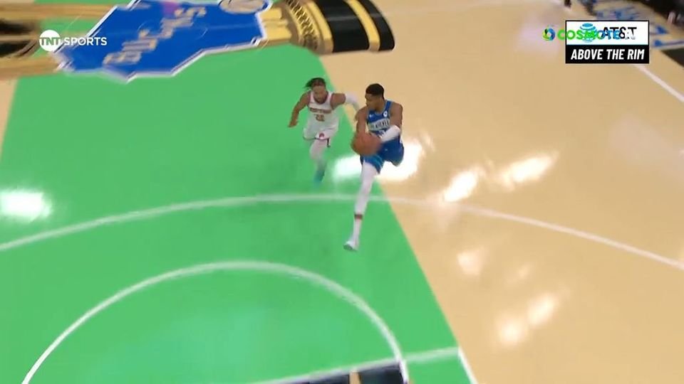 Ο Έλληνας φόργουορντ πήρε την μπάλα, κοντά στο καλάθι των Μπακς, έκανε μια ντρίμπλα, διέσχισε 22 μέτρα στον αιφνιδιασμό και με φοβερό tomahawk κάρφωμα έδωσε προβάδισμα επτά πόντων στην ομάδα του.