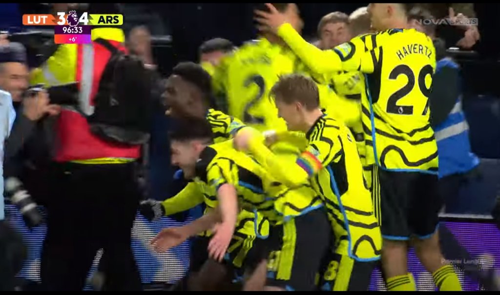 Στην έδρα της Λούτον, η Άρσεναλ νίκησε 4-3 με γκολ του Ντέκλαν Ράις, στην τελευταία φάση του αγώνα, στο 90'+7' για την ακρίβεια, με την πρωτοπόρο της Premier League να βρίσκεται στο +5 από τη Μάντσεστερ Σίτι, που έχει παιχνίδι λιγότερο. Η Άρσεναλ κατάφερε να φτάσει στη νίκη, παρά τα λάθη του τερματοφύλακάτης, τα οποία εκμεταλλεύτηκαν οι νεοφώτιστοι.