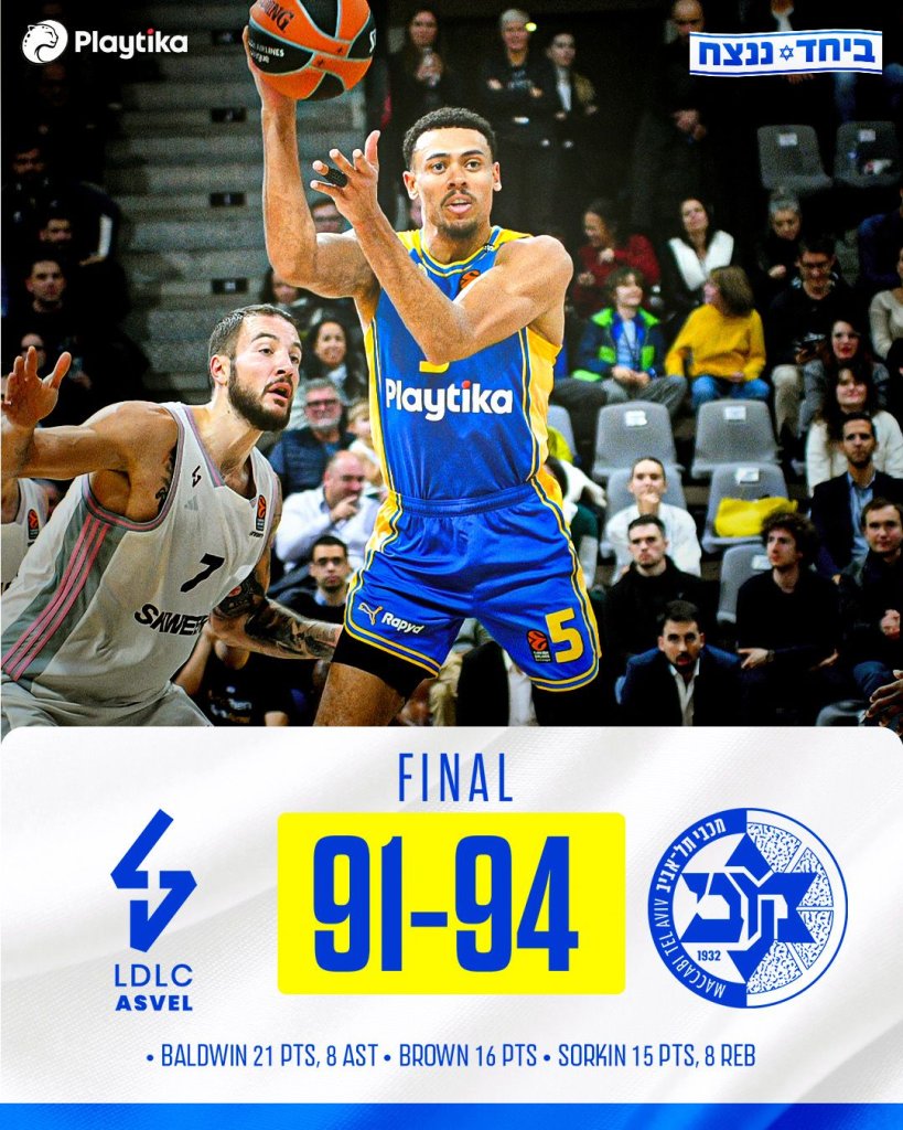 Η Μακάμπι Τελ Αβίβ «απέδρασε» από την έδρα της Βιλερμπάν (94-91), σε ένα παιχνίδι που κρίθηκε σε μεγάλο βαθμό από τη σπουδαία εμφάνιση των Ουέιντ Μπόλντγουιν - Λορένζο Μπράουν.