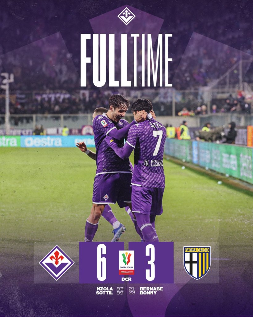Σπουδαία πρόκριση για την Φιορεντίνα! Το σύνολο του Βιντσέντσο Ιταλιάνο βρέθηκε να χάνει με 2-0 από την Πάρμα, κατάφερε να ισοφαρίσει και να πάει το ματς πρώτα στην παράταση και μετά στα πέναλτι. Εκεί, οι «Βιόλα» ήταν πιο εύστοχοι, κέρδισαν με 4-1 και πέρασαν στα προημιτελικά του Κυπέλλου.