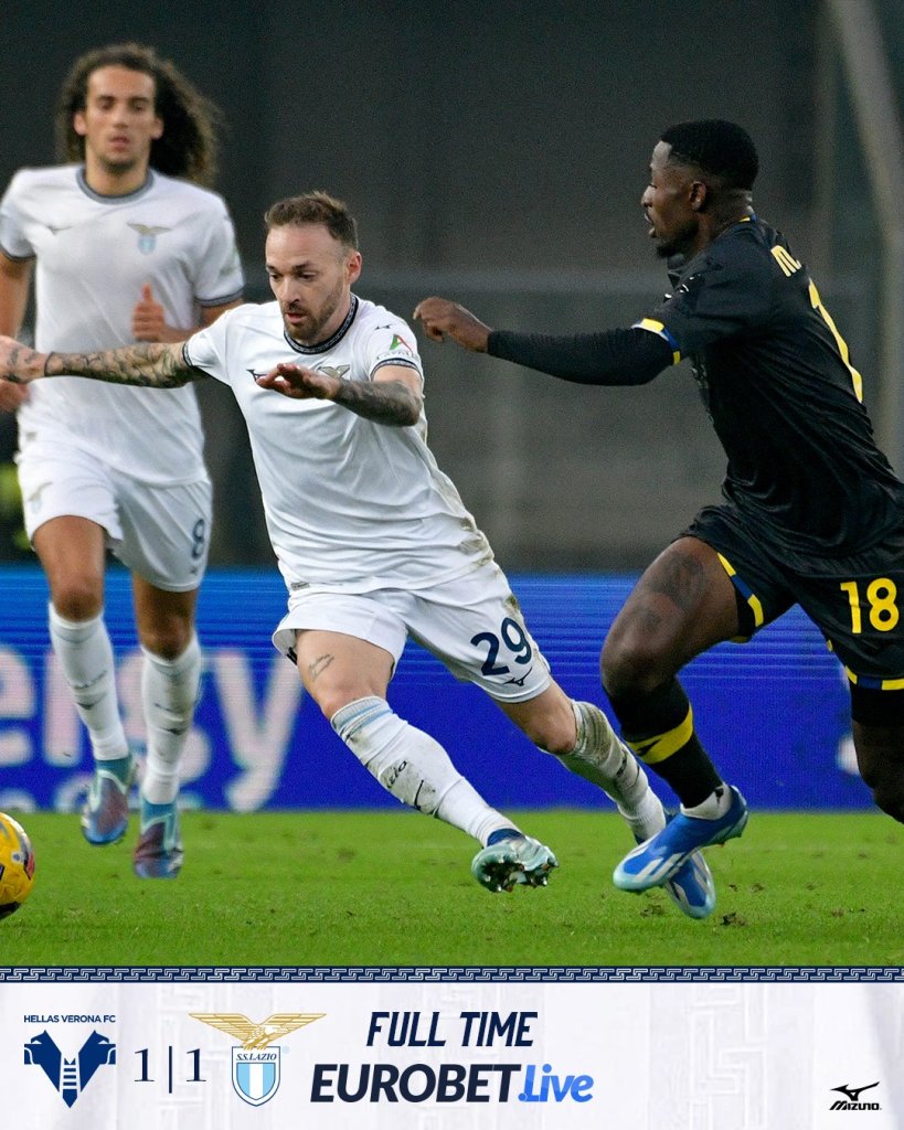 Νέο πισωγύρισμα για τη Λάτσιο η οποία κόλλησε στο 1-1 στην έδρα της προτελευταίας Ελλάς Βερόνα και χάνει έδαφος στη μάχη της τετράδας αλλά και γενικότερα της Ευρώπης. Με δέκα παίκτες από το 77’΄η Ελλάς που παραμένει σταθερά στη ζώνη του υποβιβασμού.
