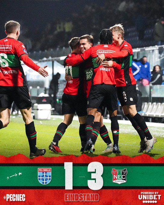 Σημαντική νίκη για την Ναϊμέχεν, που επικράτησε με 3-1 της Τσβόλε εκτός έδρας και την προσπέρασε στην βαθμολογία. Ξεκίνησε βασικός ο Απόστολος Βέλλιος(αντικαταστάθηκε στο 66’, πέρασε ως αλλαγή στο 80’ ο Βελάνας.