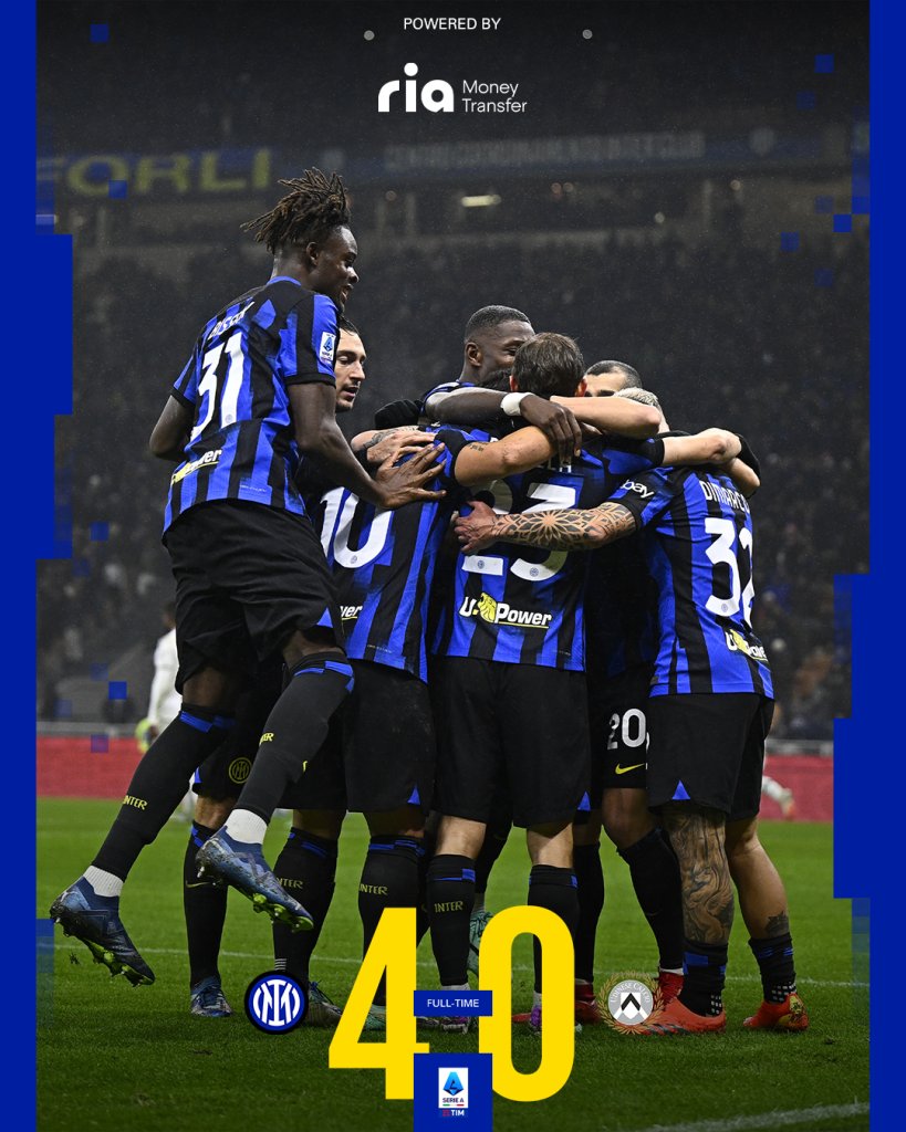 Η Ίντερ έκανε πλάκα κόντρα στην Ουντινέζε καθώς την κέρδισε με 4-0 και βρέθηκε ξανά στην πρώτη θέση και στο +2’ από τη Γιουβέντους. Ξεκίνησαν να στενεύουν τα περιθώρια για την Ουντινέζε που βρίσκεται μόλις ένα βαθμό πάνω από τη ζώνη του υποβιβασμού.