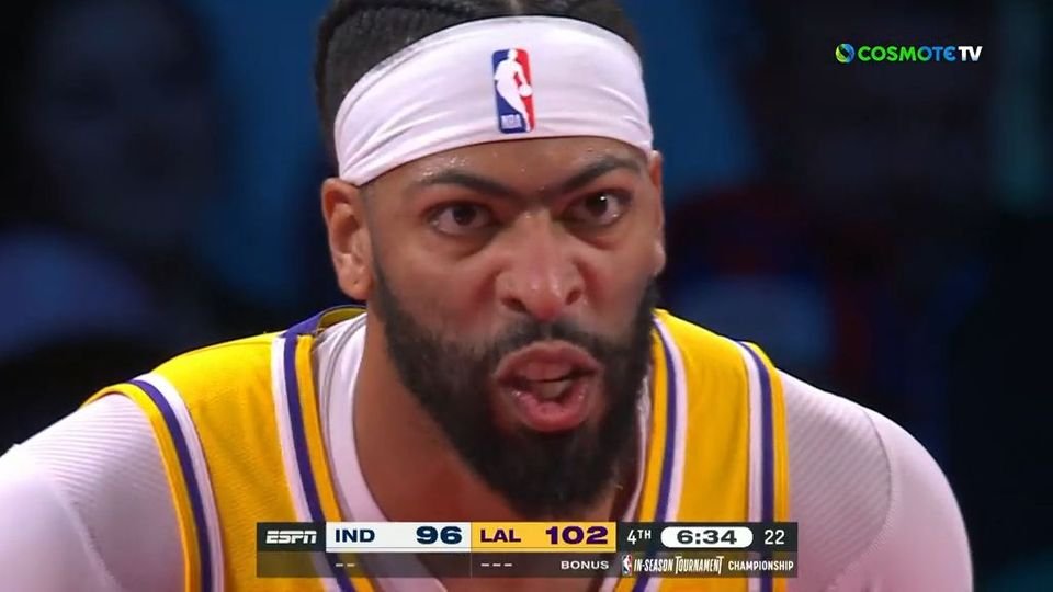 Με τους Ιντιάνα Πέισερς να έχουν πλησιάσει στους τέσσερις πόντους, σχεδόν επτά λεπτά πριν από τη λήξη του τελικού του In-Season Tournament, ο Άντονι Ντέιβις ανέλαβε δράση, επιτρέποντας στους Λος Άντζελες Λέικερς να φτάσουν στο +16 και να "καθαρίσουν" το παιχνίδι. Ο 30χρονος φόργουορντ ξεκίνησε με μια τρομερή τάπα στον ΜακΚόνελ, για να ακολουθήσει, στη συνέχεια, κάρφωμα και μεγάλα καλάθια, ώστε να επιβεβαιωθεί το πού θα πήγαινε ο τίτλος του MVP. Όλα τα λεφτά, οι γκριμάτσες του Ντέιβις.