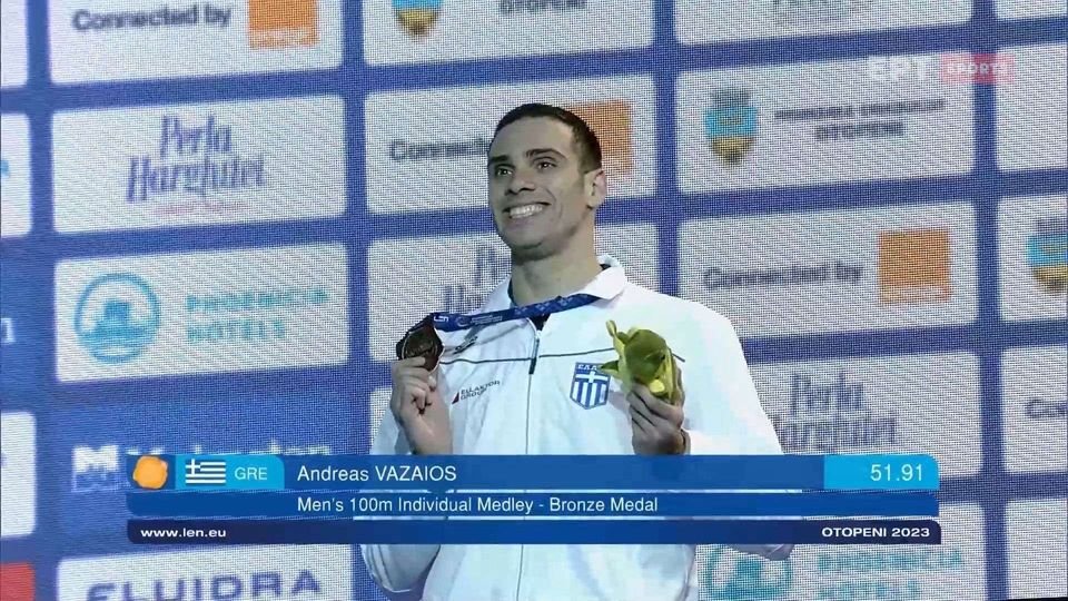 Την Κυριακή, στον τελικό των 100μ. μικτής ατομικής, ο Ανδρέας Βαζαίος τερμάτισε τρίτος και κατέκτησε το χάλκινο μετάλλιο.