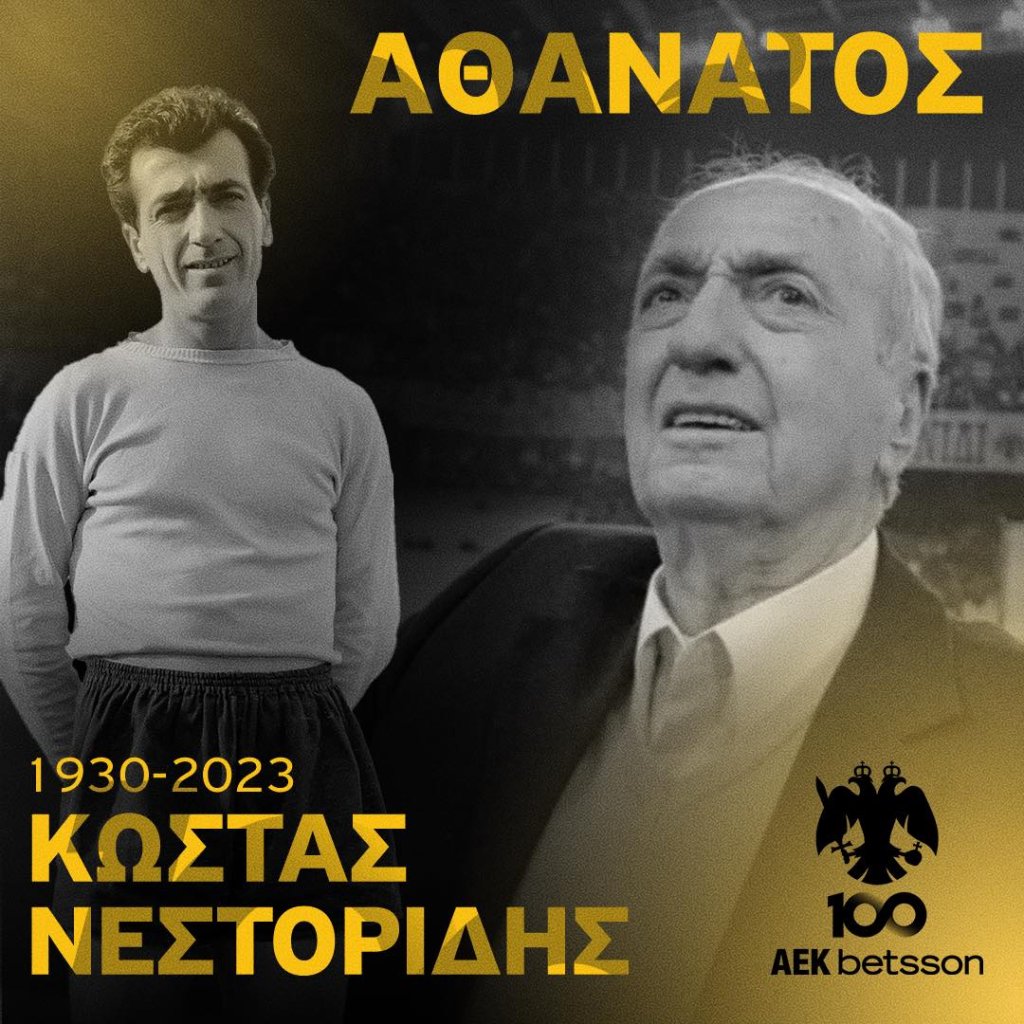 Η ΑΕΚ πενθεί για τον θάνατο του Κώστα Νεστορίδη, με την ΚΑΕ ΑΕΚ κι αυτή τη σειρά της να τον αποχαιρετά. Η ανακοίνωση της ΚΑΕ αναφέρει: