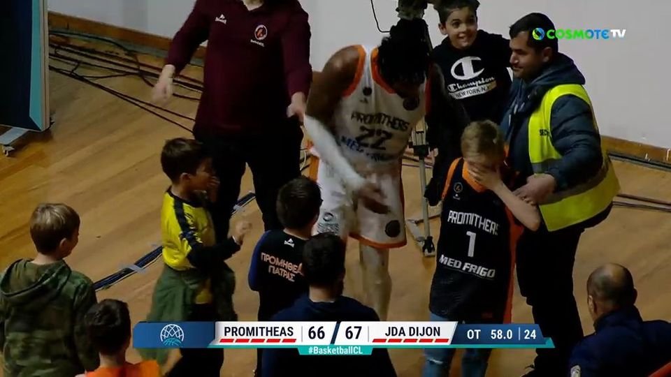 Μετά από μια διεκδίκηση της μπάλας, ο Κρις Κόφι έριξε κάτω, άθελά του, έναν μικρό οπαδό του Προμηθέα.Δείτε την άτυχη στιγμή στον αγώνα του BCL με την Ντιζόν: