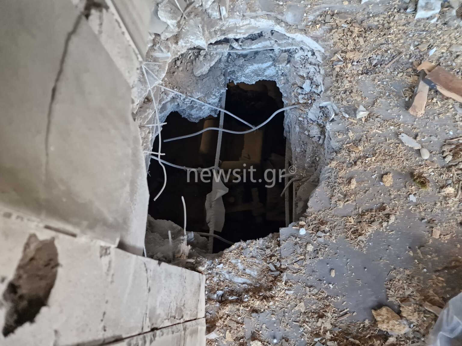 Στο σημείο που προκλήθηκε η ισχυρή έκρηξη δεν υπήρξε εστία φωτιάς, ωστόσο τεράστιες ζημιές από το ωστικό κύμα εντοπίζονται εκατοντάδες μέτρα μακριά.