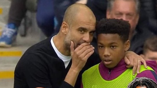 Micah Hamilton was a ball boy for Man City in 2017 receiving some instructions from Pep during game vs Crystal Palace…