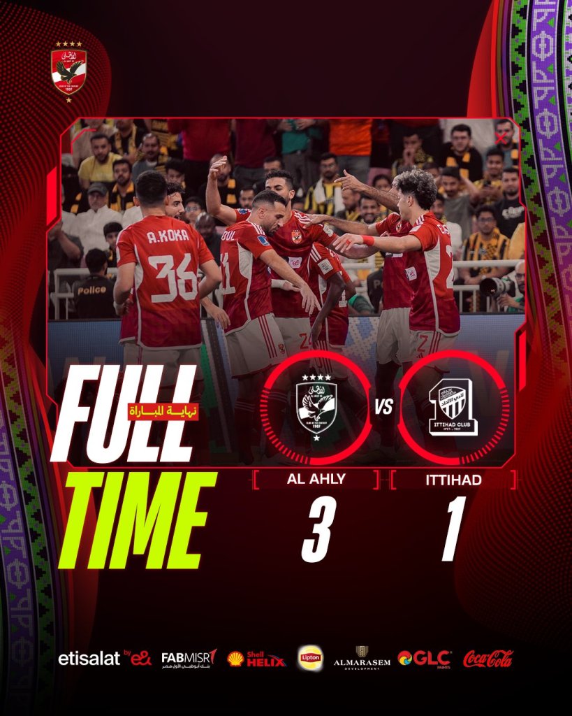 Την νίκη με 3-1 πανηγύρισε η Αλ Αχλί επί της Αλ Ιτιχάντ και πανηγύρισε την πρόκριση για τα ημιτελικά του Παγκοσμίου Κυπέλλου Συλλόγων, εκεί όπου θα αντιμετωπίσει την Φλουμινένσε.