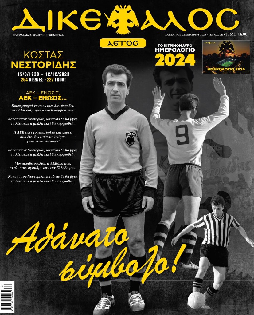 Ο Δικέφαλος αποχαιρετά τον μυθικό ποδοσφαιριστή της Α.Ε.Κ. των 227 γκολ σε 264 εμφανίσεις, με ένα σούπερ πολυσέλιδο αφιέρωμα!