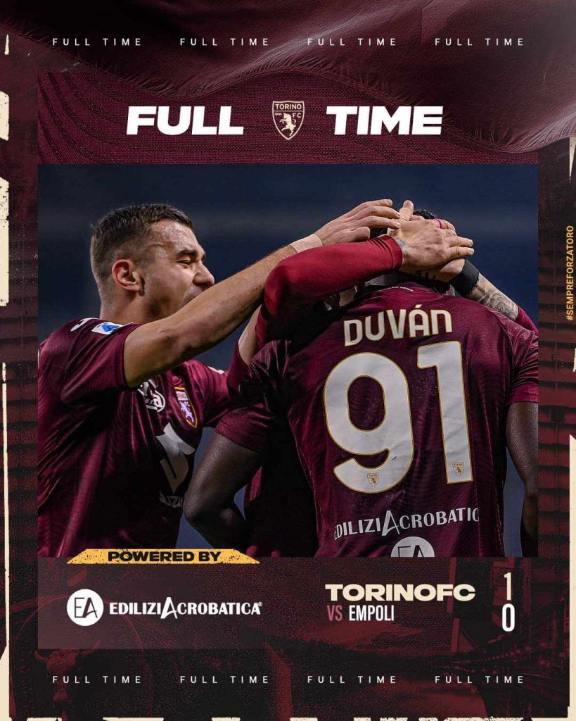 Στα πλαίσια της 16ης αγωνιστικής η Τορίνο φιλοξένησε την Έμπολι. Η Γκρανάτα ήταν η καλύτερη ομάδα στο γήπεδο και επιβλήθηκε με σκορ 1-0 χάρη σε γκολ του Ζαπάτα. Η νίκη αυτή δίνει τη δυνατότητα στην ομάδα του Γιούριτς να ονειρεύεται ευρωπαϊκή συμμετοχή καθώς απέχει μόλις 2 βαθμούς από τις θέσεις που οδηγούν στην Ευρώπη. Στον αντίποδα καθηλωμένη στη ζώνη του υποβιβασμού παραμένει η Έμπολι, η οποία θα πρέπει να ψάξει για βαθμούς στα επόμενα παιχνίδια της.