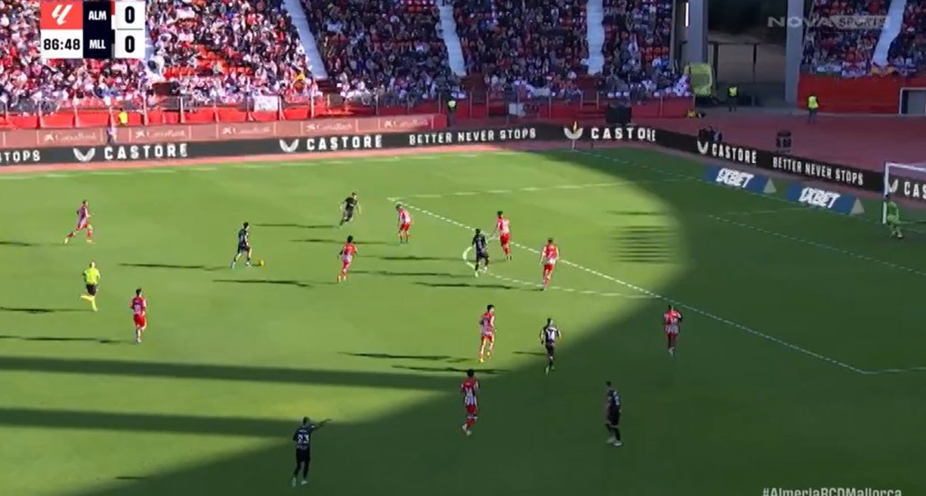 Μάλιστα, στο 8ο λεπτό, η Μαγιόρκα είχε πολύ καλή ευκαιρία να ανοιξει το σκορ, όταν ο Λαρίν βρέθηκε σε πλεονεκτική θέση, αλλά, αστόχησε. Σε διάστημα τριών λεπτών (36', 39'), ο τερματοφύλακας της Αλμερία, ο Μαξιμιάνο, κράτησε το μηδέν, στις πολύ καλές ευκαιρίες που είχαν ο Σάμου Κόστα και ο Λαρίν. Οι δυο ομάδες είχαν τις στιγμές τους, αλλά, η καλή αμυντική λειτουργία, σε συνδυασμό με τα κακά τελειώματα, κρατούσαν το ματς στο 0-0. Στο τελευταιο δεκάλεπτο, η Μαγιόρκα έπαιζε, ουσιαστικά, με δέκα παίκτες, αφού ο Χάουμε Κόστα τραυματίστηκε και δεν μπορούσε να συνεχίσει, αλλά, ο προπονητής του, ο Χαβιέ Αγκίρε, είχε κάνει όλες τις αλλαγές. Στο 84ο λεπτό, η Αλμερία σκόραρε, με τον Ραμαζάνι, αλλά το γκολ ακυρώθηκε για επιθετικό φάουλ.