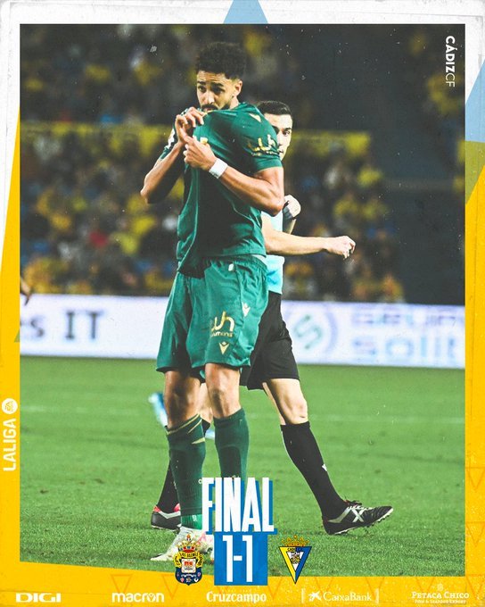 Η Κάδιθ αναδείχθηκε ισόπαλη 1-1 με την Λας Πάλμας εκτός έδρας και βγήκε από την επικίνδυνη ζώνη, ενώ από την πλευρά τους οι γηπεδούχοι, έχασαν την ευκαιρία να μειώσουν στους τρεις βαθμούς την απόσταση από τις ευρωπαϊκές θέσεις.