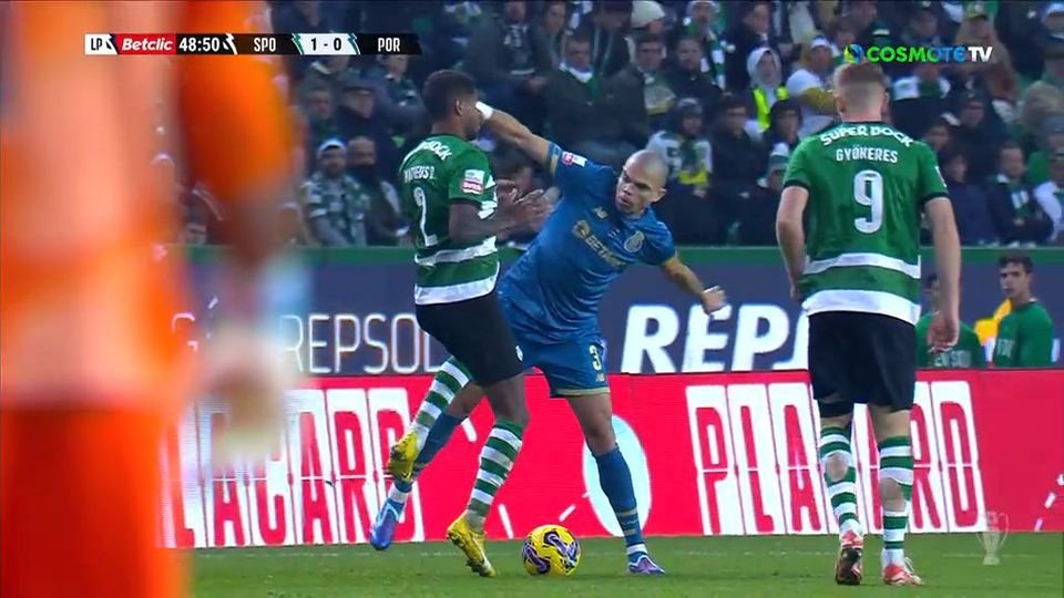 Ο Πέπε είδε την κόκκινη κάρτα, όταν απάντησε με γροθιά σε σπρώξιμο του Ματέου Ρέις. Η φάση εξετάστηκε στο βίντεο και ο διαιτητής απέβαλε τον 40χρονο κεντρικό αμυντικό.