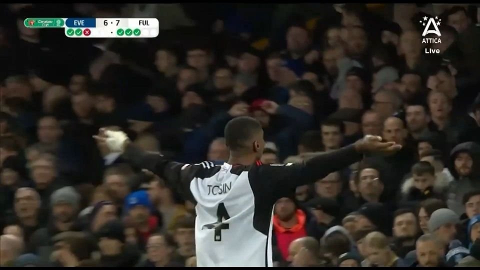 Στο "Γκούντισον Παρκ", μετά το 1-1 της κανονικής διάρκειας, η διαδικασία των πέναλτι έκρινε ποια από τις Έβερτον, Φούλαμ, θα συνέχιζε στα ημιτελικά του Λιγκ Καπ Αγγλίας. Στη "ρώσικη ρουλέτα", οι Ντε Κόρδοβα–Ριντ, Ονάνα νικήθηκαν από τους Πίκφορντ και Λένο αντίστοιχα, ο Γκέιγ πέτυχε το δοκάρι και τελικά η Φούλαμ πήρε την πρόκριση στα ημιτελικά για πρώτη φορά στην ιστορία της με το 7-6 από την άσπρη βούλα.