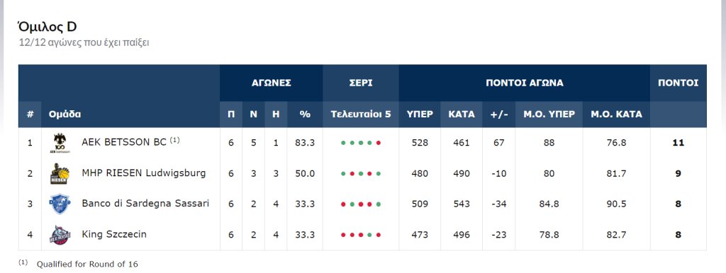 Δείτε το πανόραμα και τις βαθμολογίες σε όλα τα γκρουπ της πρώτης φάσης του BCL, ΕΔΩ