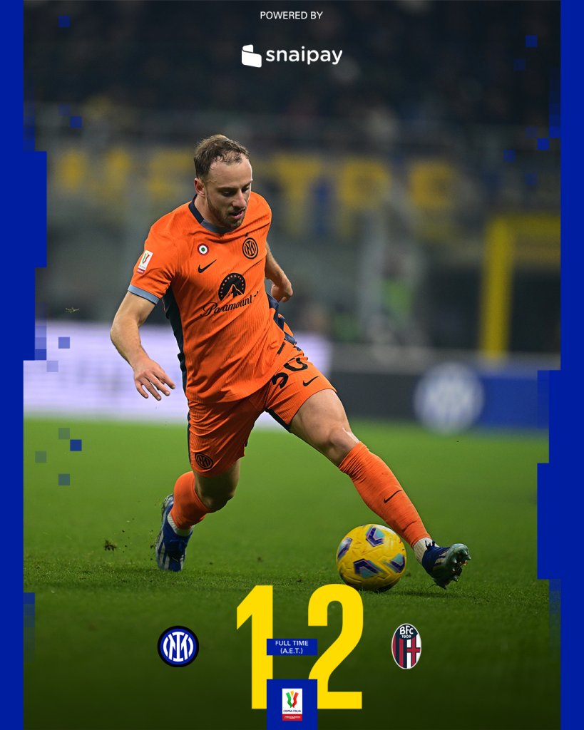 Στα προημιτελικά του Κυπέλλου η Μπολόνια με απίθανη ανατροπή, καθώς κέρδισε με 2-1 την Ίντερ στην παράταση κι ενώ είχε βρεθεί πίσω στο σκορ.