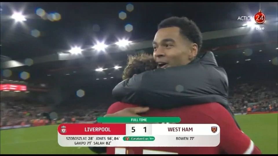 Με 29 τελικές, έναντι 2 των αντιπάλων, η Λίβερπουλ έφτασε στο εμφατικό 5-1 επί της Γουέστ Χαμ, στο "Άνφιλντ", και προκρίθηκε στα ημιτελικά του Λιγκ Καπ Αγγλίας. Τέσσερα γκολ έβαλε η ομάδα του Γιούργκεν Κλοπ, στο δεύτερο ημίχρονο, με την Γουέστ Χαμ να κερδίζει το πρώτο της κόρνερ στο 54ο λεπτό.