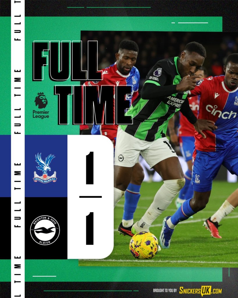 Μοιρασιά για Πάλας και Μπράιτον που έμειναν στο 1-1 και ουσιαστικά ο βαθμός δεν ικανοποίησε καμιά τους.