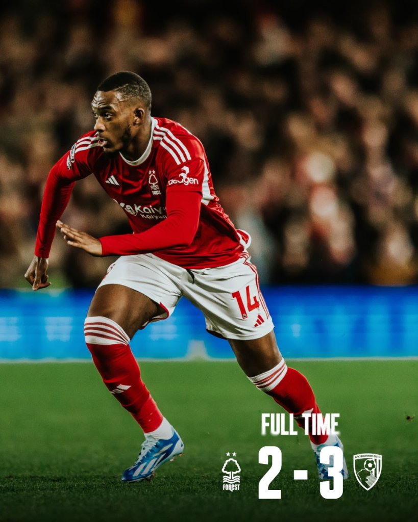 Σε σοβαρές περιπέτειες η Νότιγχαμ Φόρεσε που έχασε με 3-2 από την Μπόρνμουθ μέσα στην έδρα της και κινδυνεύει άμεσα. Mε το αριστερό στον πάγκο της Φόρεστ ο Νούνο Εσπίριτο Σάντο.