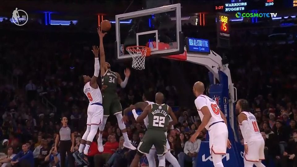 Συγκεκριμένα, ο Έλληνας σούπερ σταρ των «ελαφιών»... απογειώθηκε μετά από πάσα του Μίντλετον, πηδώντας πάρα πολύ ψηλά και τελειώνοντας τη φάση με δυναμικό κάρφωμα μπροστά στον Αρ Τζέι Μπάρετ!