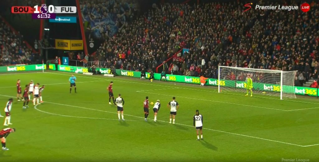 Στο 60ο λεπτό, ο διαιτητής έδειξε την άσπρη βούλα, σε μαρκάρισμα του Σεμένιο από τον Παλίνια, με τους φίλους της Μπόρνμουθ να ξεσπούν σε έξαλλους πανηγυρισμούς.