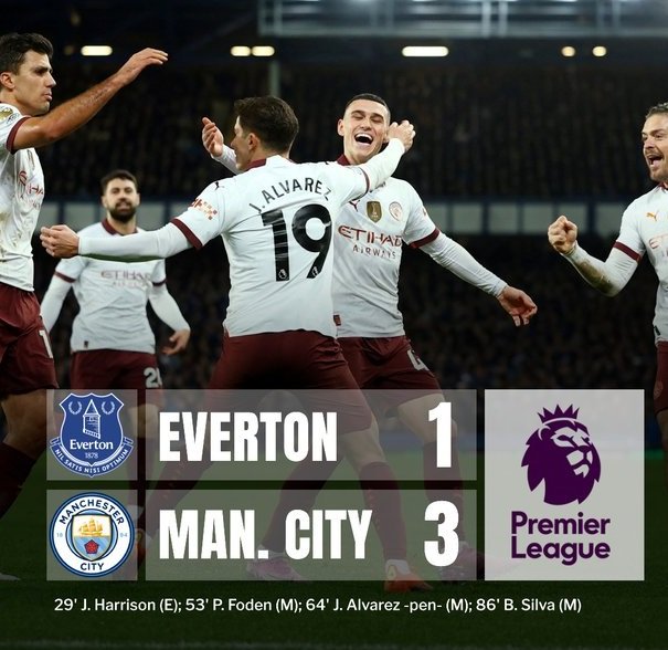 Η Σίτι βρέθηκε πίσω στο σκορ στο «Γκούντισον» αλλά έδειξε την ποιότητα της και τελικά επικράτησε 3-1 της Έβερτον. Πλέον η ομάδα του Γκουαρδιόλα είναι πέντε πόντους πίσω από την κορυφή με ένας ματς λιγότερο.